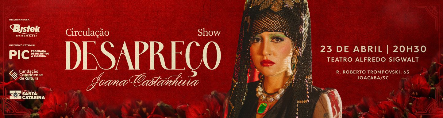 Comprometido com a inclusão, o espetáculo prevê acessibilidade por meio de intérprete de Libras, garantindo que a experiência artística alcance um público mais amplo. “Desapreço” se consolida como uma obra potente da cena musical catarinense contemporânea, reafirmando Joana Castanheira como uma artista que transita com profundidade entre a música e as artes da cena.