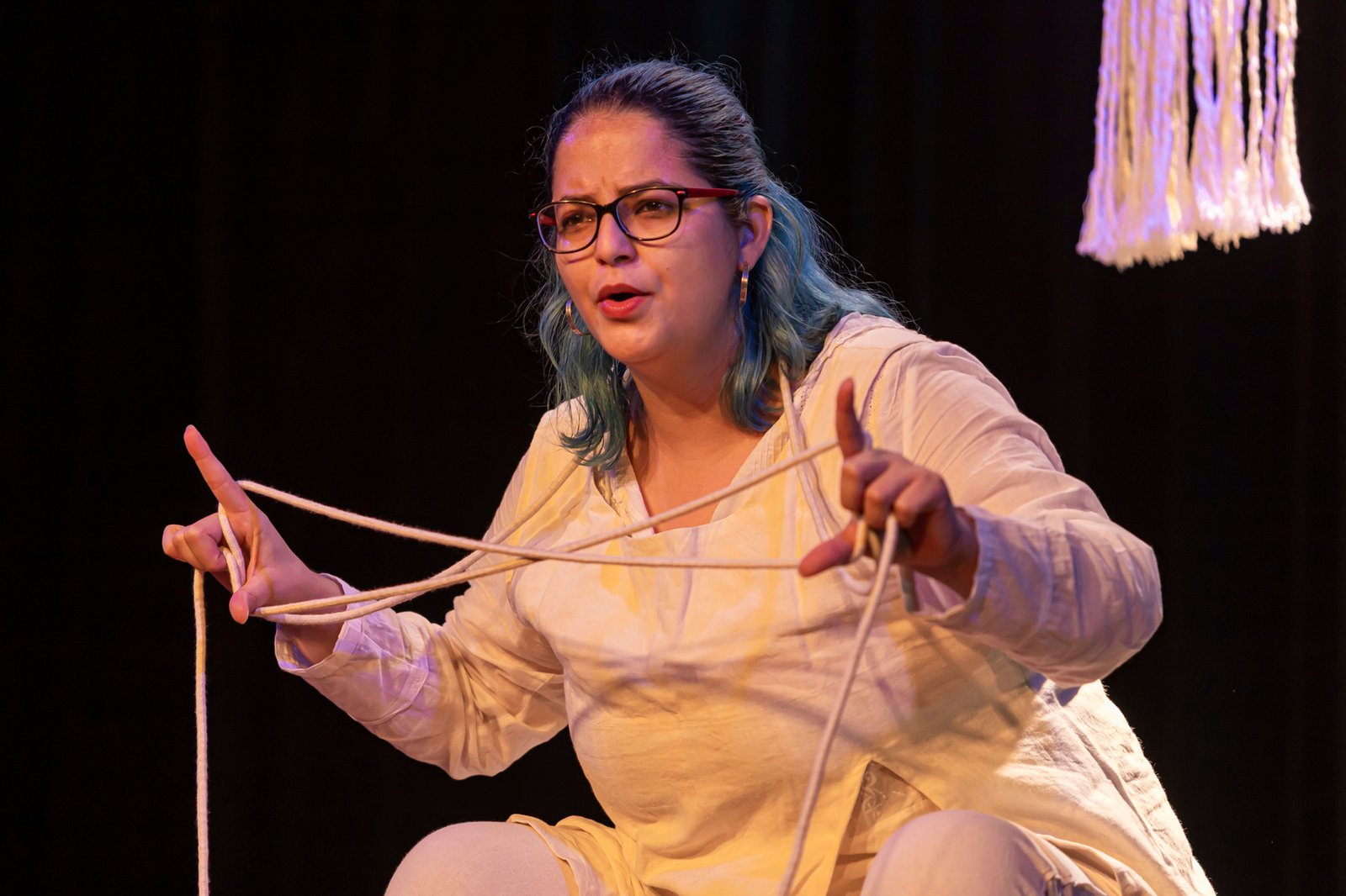Quantas amarras carregamos em nosso corpo ao longo da vida? De quantas conseguimos nos libertar? Entre o tecer dos fios e o tecer das histórias, o espetáculo traz narrativas de mulheres-pássaro de diferentes localidades do mundo, que têm no voo, o desejo de se soltar dessas amarras. O bater das asas dessas mulheres chega como uma nova forma de ler o mundo.