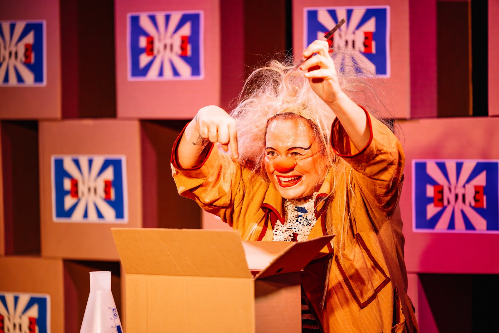 Uma palhaça cientista começa seu primeiro dia na renomada Fábrica EntrƎ. Jaleco impecável, bancada esterilizada, prancheta em mãos: tudo parece estar em seu devido lugar. Ela está pronta para seguir as regras, cumprir metas e alcançar altos níveis de excelência. Em meio à fábrica, parece que cada gesto humano tem um padrão invisível a ser seguido. Mas algo estranho acontece quando a produção começa. As normas escapam do controle, os objetos ganham vida própria, sons, sinais e memórias se entrelaçam no ambiente fabril. Entre ruídos, etiquetas e interrupções inesperadas, surgem brechas. O que parecia ser apenas mais uma jornada eficiente se transforma em uma experiência de descobertas — sobre o corpo, o outro, o cuidado e o desencaixe.