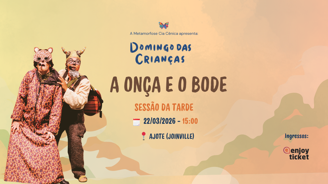 À tarde, a família pode retornar para o teatro para assistir A Onça e o Bode (🕒 15h), outro espetáculo musical inspirado no universo dos contos populares, no qual um bode andarilho — cansado de viajar com sua viola — procura um lugar para construir sua casa, enquanto uma onça, que teve sua floresta queimada, também busca recomeçar. Do encontro entre os dois, nasce uma narrativa cheia de humor, esperteza e imaginação, com o sabor das histórias tradicionais que atravessam gerações. A solidariedade e a sustentabilidade, temas tão importantes na atualidade, também integram a narrativa.